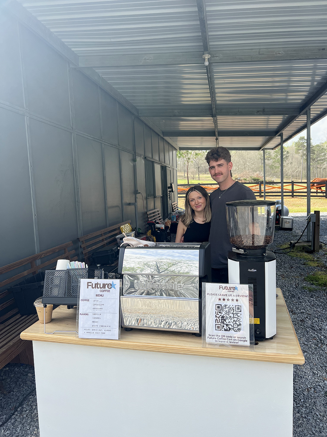 Welcome to Future Coffee — a mobile espresso cart crafting thoughtful coffee experiences for events throughout Montgomery, Pike Road, and the greater River Region, with select travel to Auburn, Birmingham, and other surrounding cities.